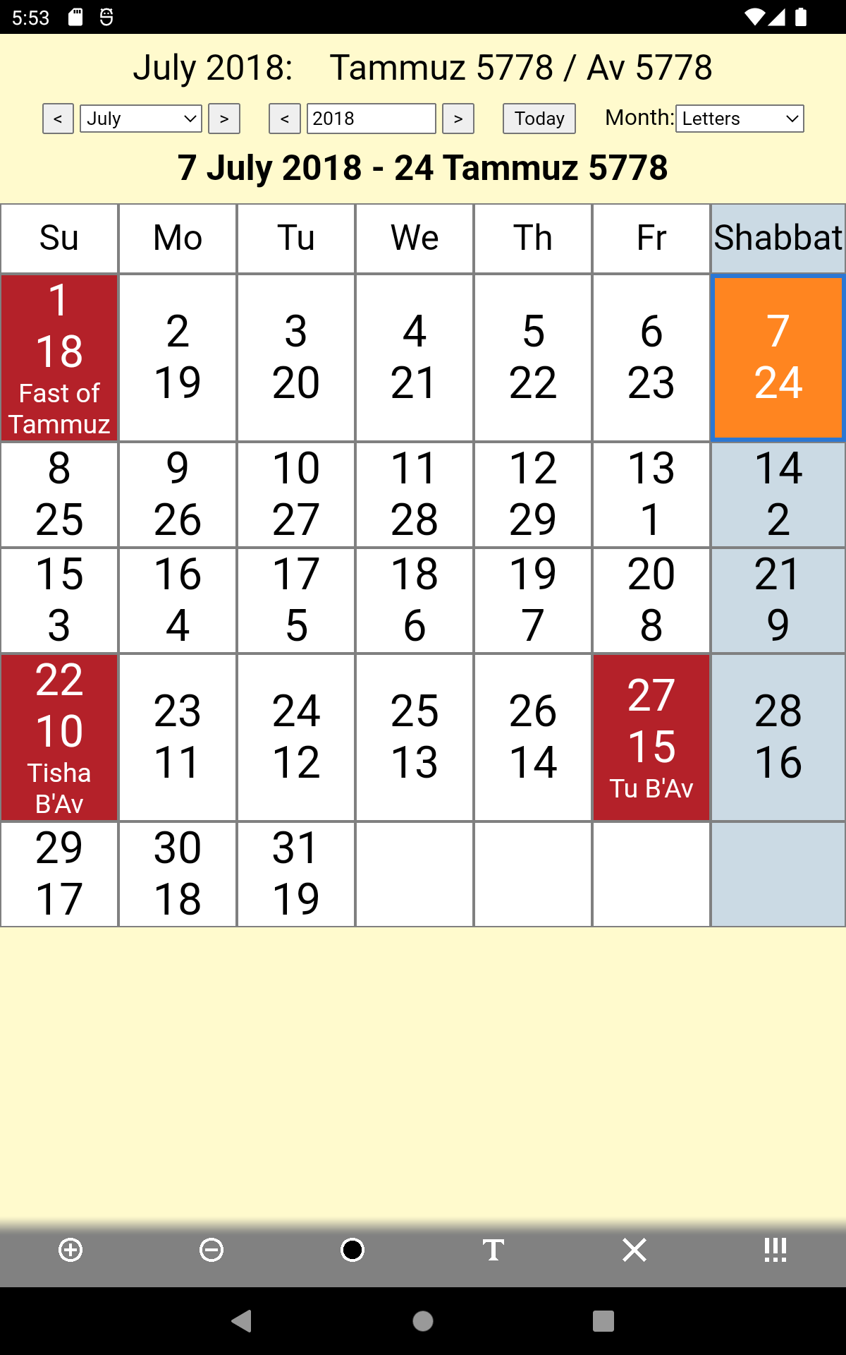 We present to your attention the application Jewish Calendar and Holidays (Lite).